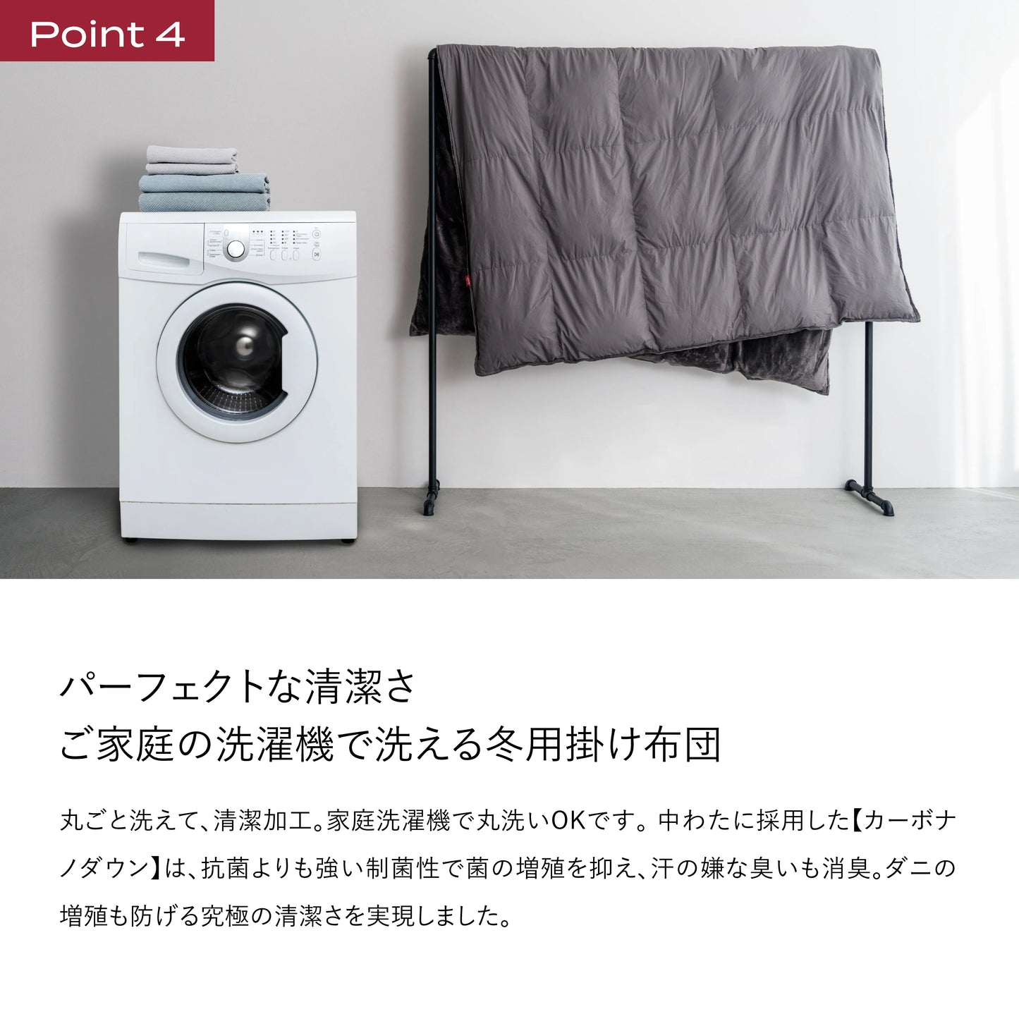 超軽量生地の裏面にカーボン加工。断熱テクノロジーで、布団内部の暖かさを逃がさず、外の冷気をシャットアウトします。