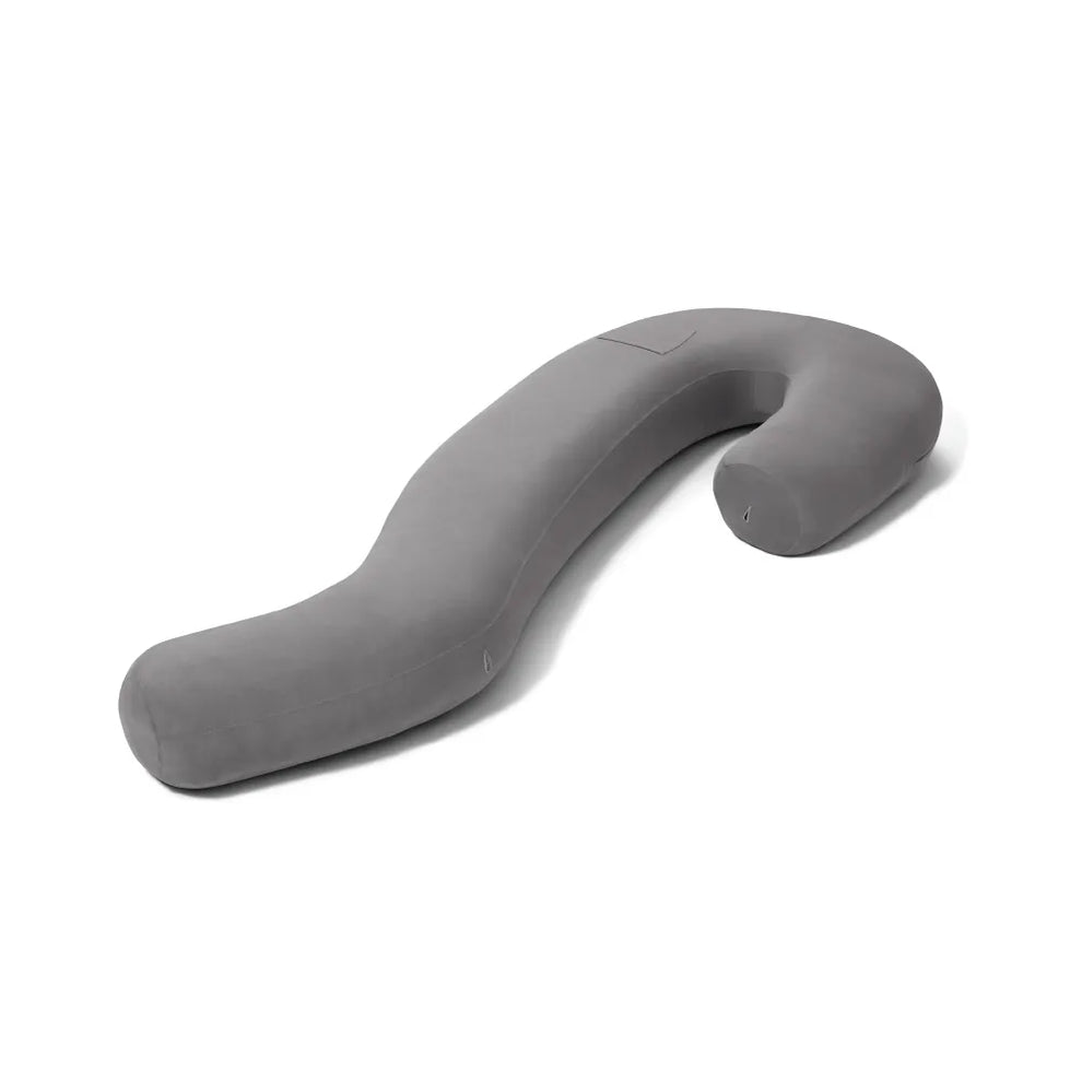背中と腰にフィットして支え、寝姿勢を整えて寝返りを抑制。脚でしっかりホールドできる設計により、安定した横向き寝を維持します。