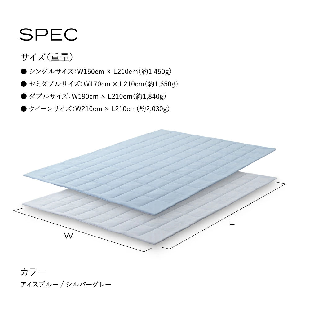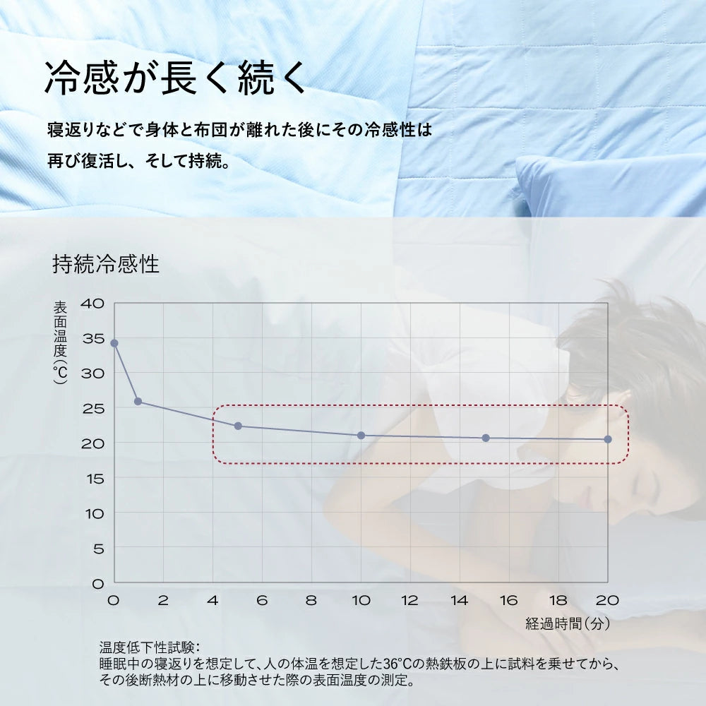 掛け布団以外に、マットレスプロテクターやピローカバーを一緒に使用頂くとさらに冷たく涼しい寝床内環境をつくる事ができます。