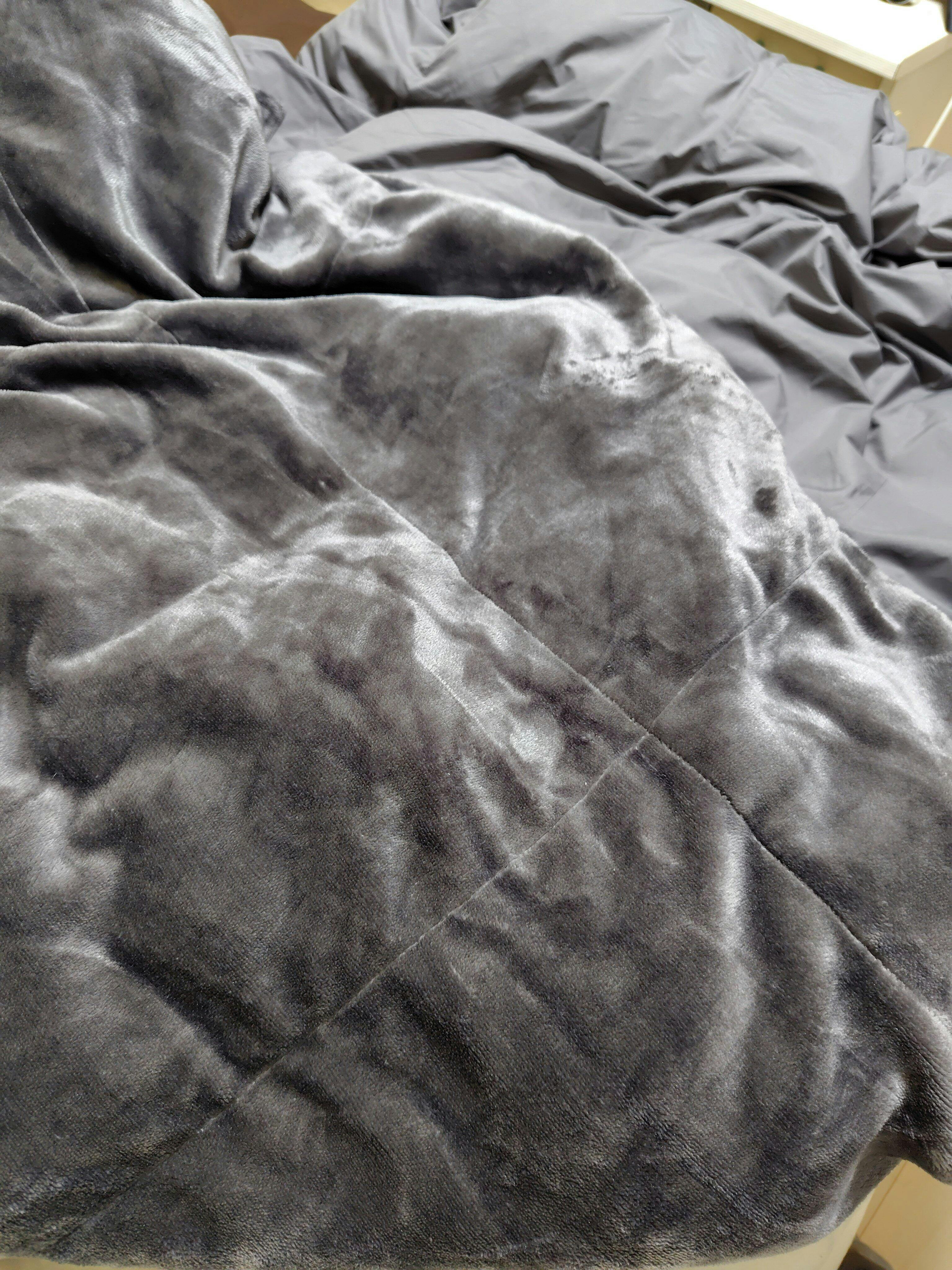 掛け布団と毛布を重ねた時のずれも解消出来て、1枚2役の毛布一体型仕様。カバーも掛けずにそのまま使用できます。