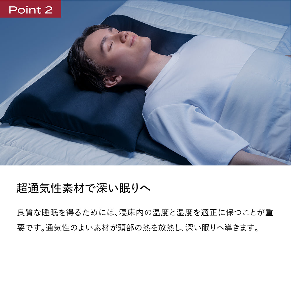 良質な睡眠を得るためには、寝床内の温度と湿度を適正に保つことが重要です。通気性のよい素材が頭部の熱を放熱し、深い眠りへ導きます。